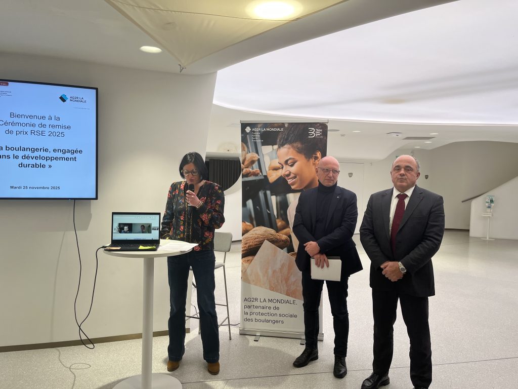 Ces prix ont été remis notamment par Dominique Anract, Président de la Confédération Nationale de la Boulangerie Pâtisserie Française et par Eric Vasseur, Directeur des accords de branches du Groupe AG2R LA MONDIALE. En présence de Muriel Debourges, Responsable de développement Direction santé, prévoyance et accords de branches chez AG2R LA MONDIALE et Alicia Fouletier, Chargée de missions RSE chez AG2R LA MONDIALE.