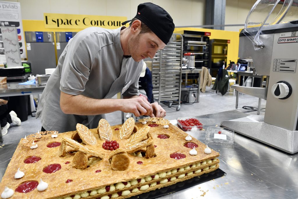 Chaque artisan boulanger-pâtissier, représentant son entreprise, doit venir avec 3 plaques de feuilletage cuites de taille 60×40 cm et sa garniture déjà préparés. Habillé en tenue professionnelle, il apporte également son petit matériel et son support de présentation. Il dispose d’une heure pour assembler et décorer son millefeuille